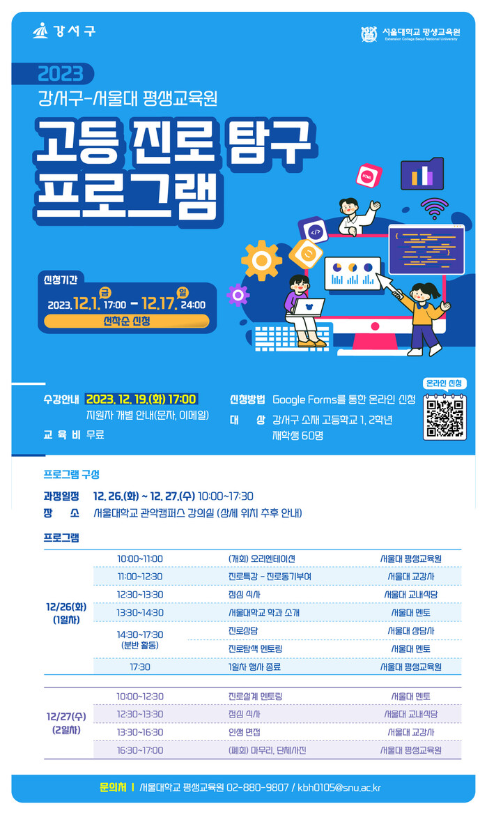 | ▲ '고교 인재 육성 캠프' 고등 진로 탐구 프로그램 안내문. (사진=강서구청 제공) |