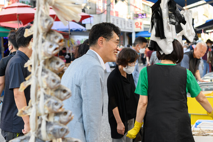| ▲ 지난 추석, 전통시장을 방문한 이기재 구청장 (사진 = 양천구청 제공) |