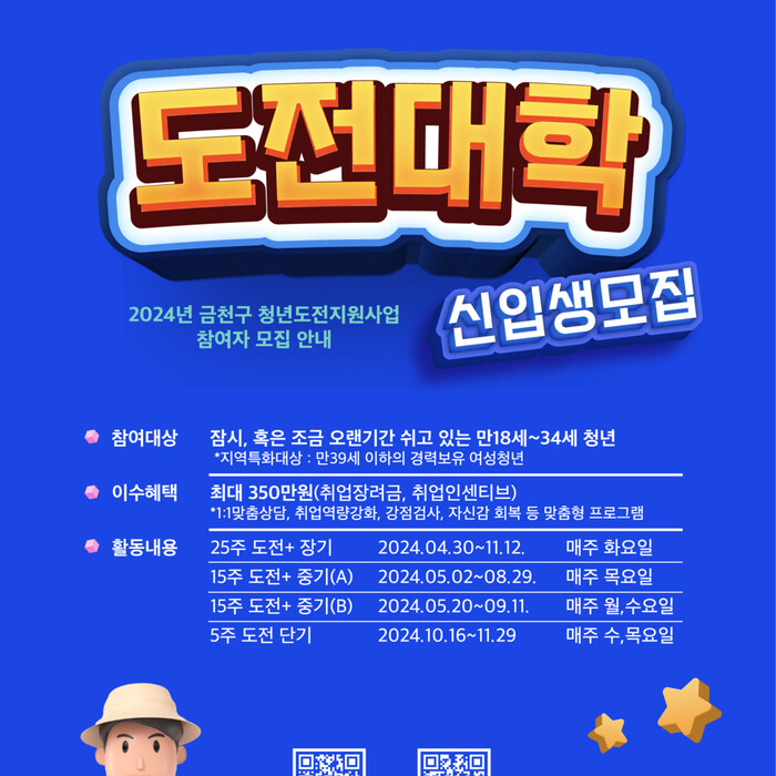 [시민일보 = 여영준 기자] 서울 금천구는 26일까지 구직 단념 청년을 대상으로 취업을 지원하는 ‘청년도전지원사업’ 참여자를 모집한다고 밝혔다.
