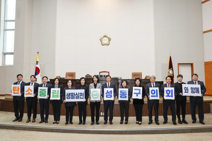 [시민일보 = 홍덕표 기자] 서울 성동구의회(의장 김현주)는 최근 의회 본회의장에서 기후위기 극복을 위해 생활속 탄소중립 실천을 다짐하는 자리를 마련했다고 밝혔다.