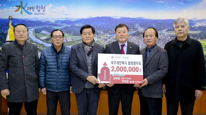 김윤철 합천군수는 “대구개인택시 합천향우회의 진심 어린 고향 사랑에 감사드리며, 향우회에서 전달해주신 소중한 기부금은 지역의 어려운 이웃들을 돕는 데 쓰도록 하겠다”고 말했다.