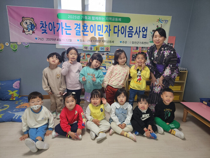 첫 수업은 일본 출신의 결혼여성이민자가 강사로 활동하여 합천삼육어린이집 5~6세 아동 20명을 대상으로 언어, 의복, 식생활 등 다양한 일본 문화를 주제로 프로그램을 진행하였으며 참여한 아동 모두가 신기하고 재미있다는 반응을 보였다.