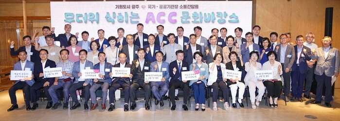 | ▲ 강기정 광주광역시장(앞줄 오른 쪽부터 7번째)이 30일 오후 동구 국립아시아문화전당(ACC)에서 열린 '제4차 광주지역 주요 국가·공공기관장 소통간담회'에 참석해 기념촬영을 하고 있다./광주광역시 제공 |