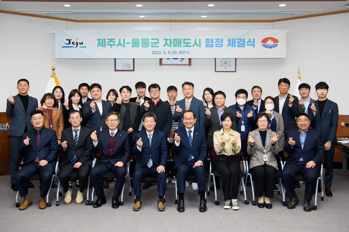 3월9일 제주시청 회의실에서 강병삼 제주시장과 남한권 울릉군수는 양 지자체간 자매결연 조인식을 가졌다.