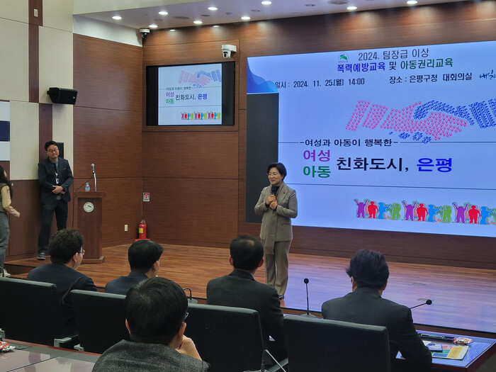 [시민일보 = 이대우 기자] 은평구(구청장 김미경)는 권력형 성비위 사건 예방 및 아동의 권리 보호를 위한, 상급자 역량 강화를 목적으로 ‘2024 팀장급 이상 폭력예방 및 아동권리 교육’을 실시했다.