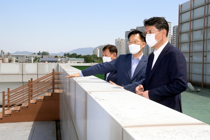 [광주=정찬남 기자] 조인철 광주광역시 문화경제부시장이 26일 오전 광산구 장덕동 소재 하남근로자종합복지관을 방문해 시설을 점검한 후 관계자로부터 건의사항을 청취하고 있다. /광주광역시 제공