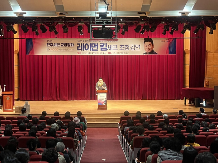 이날 강좌에는 500여 명의 시민이 참석해 성황을 이룬 가운데 ‘레이먼 킴’ 셰프가 ‘K-푸드 세계화와 진주의 맛’을 주제로 강연을 펼쳤다. 특히 K-푸드 열풍 속에서 진주의 음식문화가 지닌 고유한 가치와 세계 시장에서의 잠재력에 대해 설명하며 큰 호응을 얻었다.