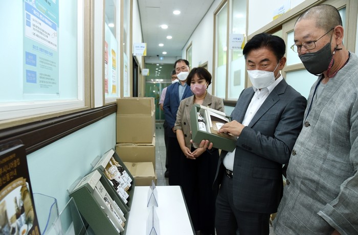 김동근 경기 의정부시장은 최근 시니어클럽 현장 점검을 통해 시설을 이용하는 종사자 및 노인들의 안전을 확인하기 위해 의정부시니어클럽을 방문해 시설을 점검했다. 사진은 김 시장(오른쪽 두번째)이 관계자들과 시설을 둘러보고 있는 모습.(사진제공=의정부시청)