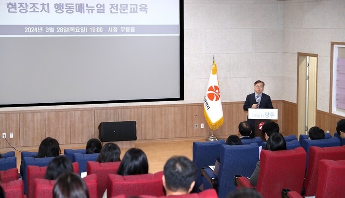 [광주=정찬남 기자] 광주광역시(시장 강기정)는 28일 시청 무등홀에서 시‧구‧유관기관 재난분야 현장조치 행동매뉴얼 담당자를 대상으로 매뉴얼 작성‧활용 등 직무역량 교육을 실시했다.