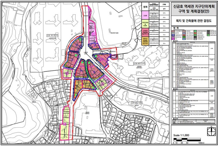 이번 지구단위계획은 역세권 기능 강화와 교차로 교통체계 개선을 통한 보행환경 개선이 주된 내용이며, 금호로 확장공사 시 편입된 필지의 잔여지에 대한 관리 방안도 포함됐다.