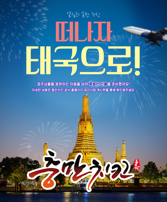 연말 우수가맹점으로 선정된 가맹점들은 태국여행 일정 중에 태국 현지 닭 공장 방문과 태국내 충만치킨 매장을 방문해 매장운영에 관한 노하우를 습득하는 기회도 갖게 된다.
