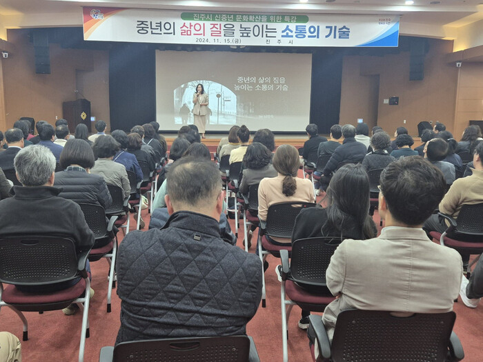 진주시는 15일 시청 시민홀에서 시민 200여 명이 참석한 가운데 신중년 문화확산을 위한 특강을 개최했다.