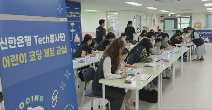 신한은행 ‘Tech 봉사단’은 IT 전문지식을 활용해 디지털 격차 해소에 기여하고자 지난해 출범한 봉사단이며, 어린이 코딩 체험 교실을 통해 디지털 금융교육 기회가 부족한 지역아동센터 및 아동양육시설 초등학생에게 금융과 코딩을 결합한 교육을 진행하고 있다.