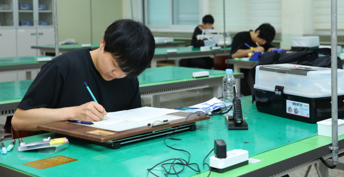 | ▲ '2023년도 전남장애인기능경기대회' 전자기기 종목에 참가한 선수들이 집중하여 주어진 과제를 수행하고 있다.(출처= 한국장애인고용안정협회 전남지부) |