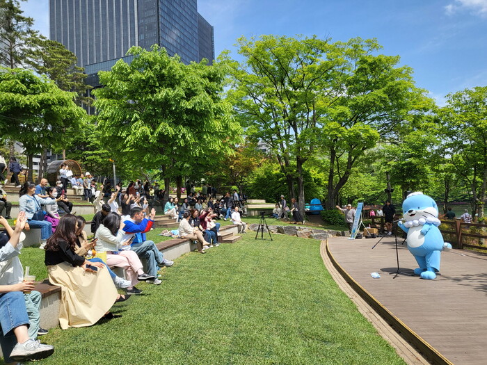 진주시는 23일 관광캐릭터 하모가 서울 송파구 석촌호수에서 버스킹 공연을 성공적으로 진행하여 진주 관광 홍보대사 역할을 톡톡히 했다고 밝혔다.