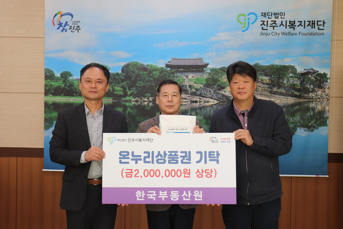 한국부동산원(원장 손태락)은 지역사회의 어려운 이웃을 돕기 위해 온누리상품권 1만 원권 200매(총 200만 원)을 진주시복지재단(이사장 이성갑)에 기탁했다.