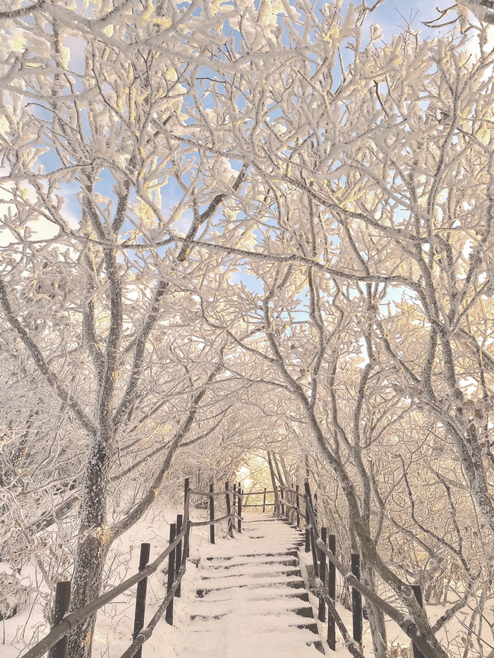 경사도도 높지 않아 노부부나 가족들끼리도 쉽게 상고대를 감상할 수 있다.
