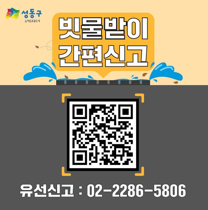 또한, 성수동 카페거리 가로등에 QR코드를 부착하였으며 주민들은 QR코드를 스캔하여 불편한 절차 없이 간단하게 빗물받이 관련 문제를 신고할 수 있게 되었으며 관리부서는 실시간 모니터링을 통해 신속히 처리할 수 있게 된다. 신고된 모든 빗물받이 불편 사항은 실시간으로 성동구 누리집(열린성동)에서도 확인할 수 있다.