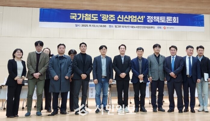 | ▲ 광주광역시, 13일 오후 빛그린국가산단에서 국가철도 광주 신산업선 정책토론회 개최 후 기념촬영 / 광주광역시 제공 |