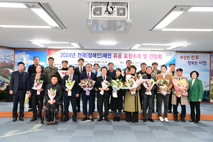 진주시는 24일 시청 3층 문화강좌실에서 2024년 전국(장애인)체전을 성공적으로 이끈 주역들에 대한 표창 수여식 및 간담회를 개최했다.