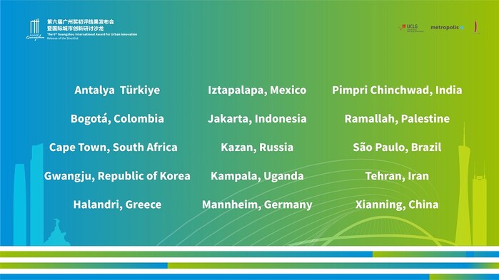 광주시와 함께 입선작으로 선정된 15개 혁신도시에는 독일 만하임, 브라질 상파울루, 이란 테헤란, 러시아 카잔, 남아프리카공화국 케이프타운 등 세계 주요 도시들이 다수 포함됐다.