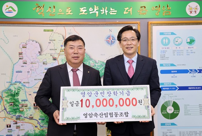 지난 2월 1일 영암군 정례조회에서 김영근 영암군 노인회장이 200만 원, 경기화성(주) 양백근 대표가 500만 원, 영암군테니스협회가 300만 원을 기탁한 데 이어, 13일 영암축산업협동조합 1,000만 원, 21일 영진건설 김규룡 대표가 고향사랑기부금 500만 원과 함께 장학회에도 500만 원을 재단법인 영암군민장학회에 기탁했다.
