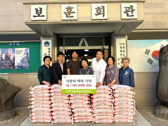 이날 기탁식에는 대호영농조합법인 안병진 이사와 재단 관계자가 참석해 진주보훈회관에 입주하고 있는 3개 단체(전몰군경미망인회 진주시지회, 전몰군경유족회 진주시지회, 상이군경회 진주시지회)에 백미를 전달하며 격려했다.