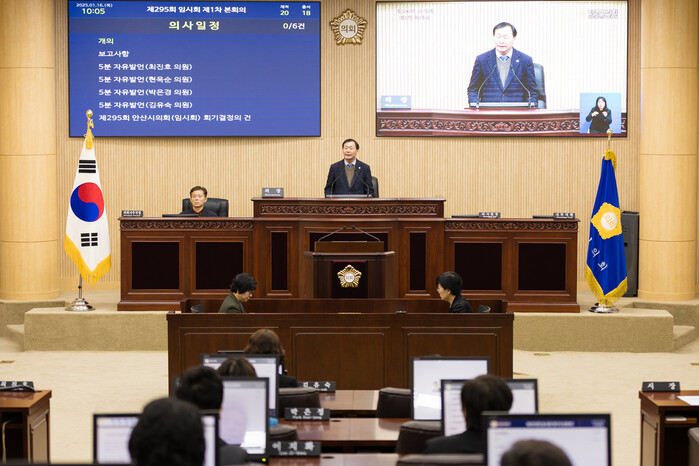 이날 본회의를 주재한 박태순 의장은 개회사에서 “이번 임시회에는 지난해 시정 성과와 금년도 운영 방향, 주요 현안 과제 공유를 위한 2025년도 업무보고가 예정돼 있다”며 “의회는 시의 주요 사업들이 안산의 미래 성장 동력 확보와 성과 창출에 도움이 될 수 있도록 면밀히 살피겠다”고 다짐했다.