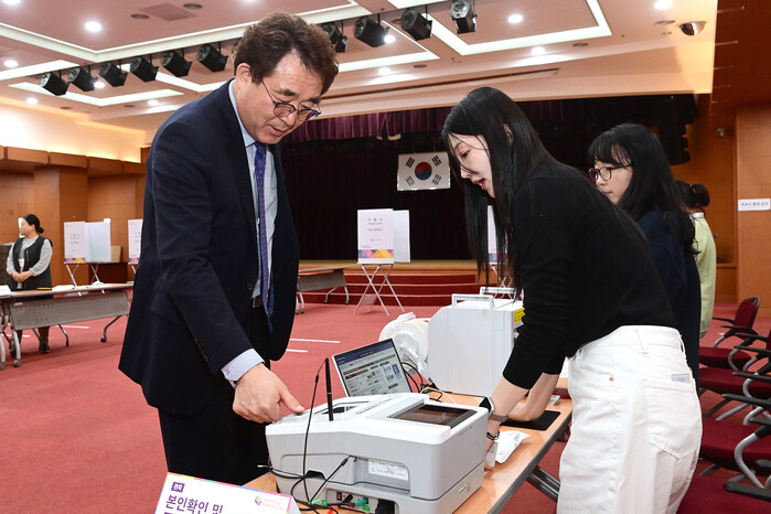 이날 차석호 진주시 부시장은 시청 시민홀에 설치된 상대동 사전투표소를 방문해 장비 운영과 투표소 내 안전관리 상태 등을 하나하나 살피며 점검했다.