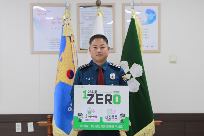 [양산=최성일 기자] 26일 한상철 양산경찰서장이 ‘1회 용품 제로 챌린지’에 동참했다.