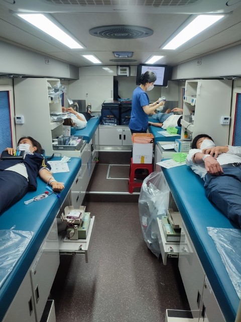 전남 장흥군은 1일 군청과 보건소 주차장 이동헌혈버스에서 혈액 수급난을 극복하고 생명을 살리는데 보탬이 되고자 '생명나눔 사랑실천 헌혈 행사'를 개최했다. 이날 100명의 공직자와 지역 주민이 뜨거운 폭염의 날씨에도 사랑실천 헌혈행사에 적극 동참했다. 사진은 직원들이 헌혈을 하고 있는 모습. (사진제공=장흥군청)