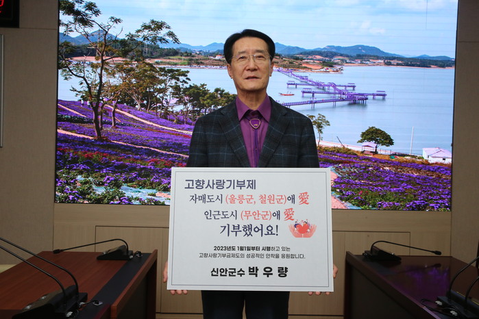 [신안=황승순 기자]박우량 신안군수는 고향사랑기부제 성공적인 정착과 기부문화 확산을 위해 고향사랑기부제 릴레이 챌린지에 참여했다고 14일 밝혔다.