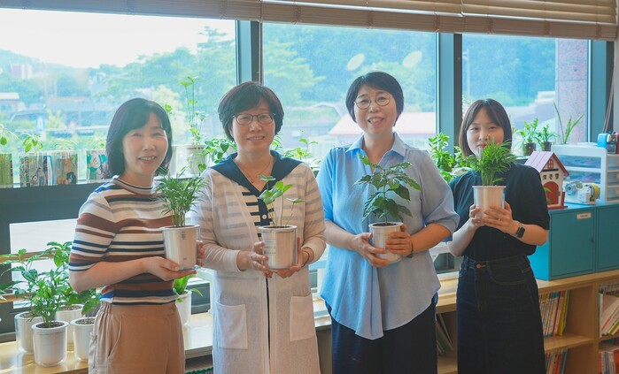 또한 이번에는 우리동네키움센터 강남4호점을 직접 찾아 임직원이 키운 반려 나무와 함께 460만 원 상당의 안국건강 제품을 전달했다.