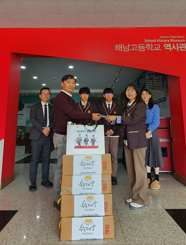 이번 격려 행사는 해남군에서 로컬 브랜드로 조성 중인 ‘초콜릿 마을’의 초콜릿 상품을 활용해 진행됐으며, 지역 학생들에게 지역 상품으로 응원의 마음을 전함으로써 전남 ‘義’ 교육을 실천하는 뜻깊은 자리가 마련됐다.