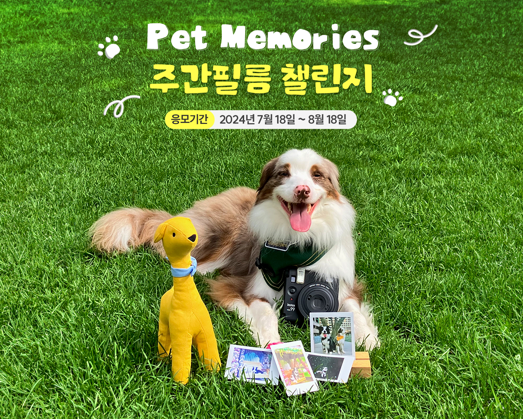 먼저 한국후지필름은 후지필름몰에서 ‘Pet Memories 펫메모리즈 주간필름 챌린지’를 열고 4주간 한주 한 컷 반려견 사진 공유 이벤트를 진행한다. 챌린지 참여자들은 주차별 주제에 맞춰 반려견의 필름 사진을 매주 한국후지필름몰에 업로드하면 된다. 챌린지 참여 횟수에 경품이 차등 지급되며 4주 챌린지를 모두 참여한 참가자 대상 추첨을 통해 소노펫클럽앤리조트 스위트 객실 숙박권(2인)을 특별 선물로 증정한다.