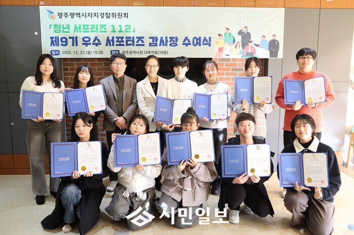이번에 감사장을 받은 우수 서포터즈는 올해 하반기 활동한 120여명의 청년 서포터즈 가운데 지역 치안 강화와 광주자치경찰 인지도 향상 기여하는 등 가장 활발한 활동을 펼친 13명이다.
