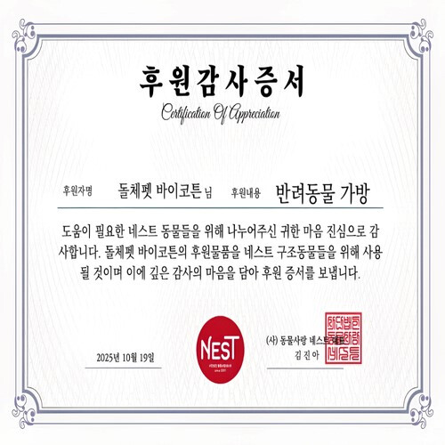 돌체펫 바이 코튼을 운영하고 있는 에스네이션 김소연 대표는 “이번 후원을 통해 보호소 반려동물들이 보다 안전하고 편안한 환경에서 생활하기를 바란다”며 “앞으로도 반려동물과 보호자가 함께 행복한 라이프스타일을 만들어가는 브랜드로서 사회공헌 활동을 지속해 나가겠다”고 전했다.