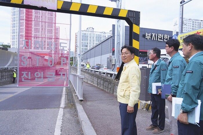 이날 강 시장은 지난 4월 완공된 지하차도 진입 자동차단시설을 살펴보고, 주말 남부지방 장마가 예보됨에 따라 호우 대응 계획을 점검했다.