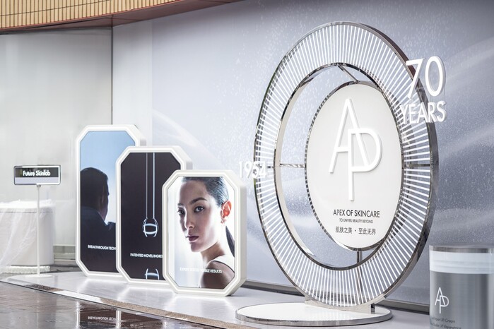에이피 뷰티는 리브랜딩 이후 중국에 첫선을 보이는 자리인 만큼 참석자들이 브랜드에 대한 이해를 높이고, 브랜드 스토리를 체험할 수 있도록 팝업스토어를 구성했다. '더 퓨처 스킨 랩(The Future Skin Lab)'이라는 콘셉트로 기획했으며, 에이피 뷰티의 브랜드 철학은 물론 대표 제품인 '듀얼 리페어 리프트 크림'의 개발 단계부터 기술력, 성분, 효능 등에 대한 자세한 스토리를 볼 수 있는 공간으로 마련했다.