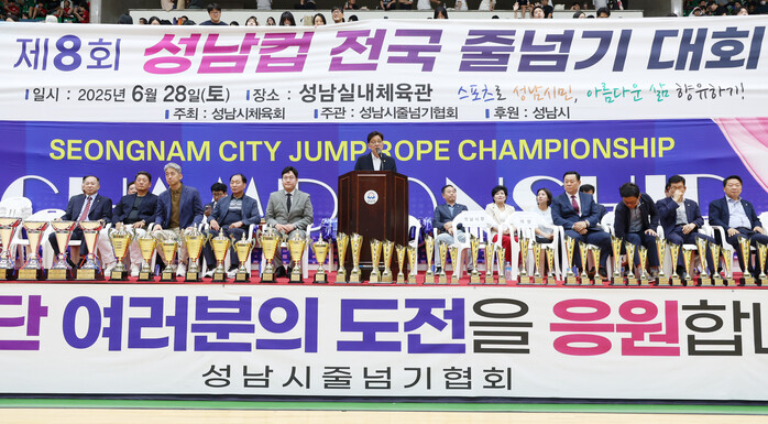 [성남=오왕석 기자] 안광림 부의장을 비롯한 성남시의회 의원들이 28일 성남실내체육관에서 열린 제8회 성남컵 전국 줄넘기대회에 참석해 선수들을 격려하고 건강한 지역 체육문화 발전을 응원했다.