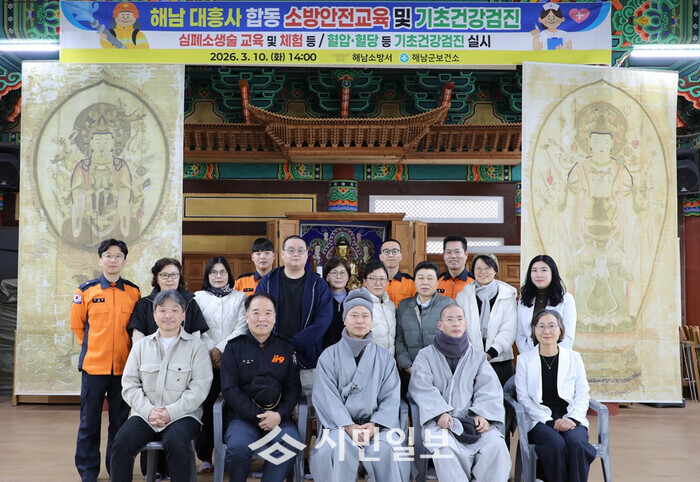 [해남=정찬남 기자] 전남 해남소방서(서장 박춘천)가 10일 오후 해남군 삼산면 대흥사 보현전에서 스님 및 종무실 관계자 등을 대상으로 합동 소방안전교육과 기초건강검진을 추진했다.