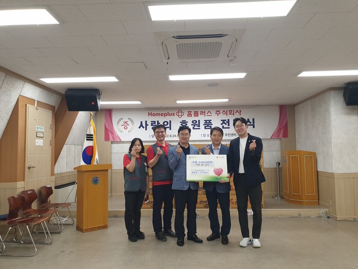 서울 강서구 화곡2동 동주민센터가 최근 민족 대명절 추석을 맞아 홈플러스 주식회사로부터 200만원 상당의 라면을 후원품으로 전달받았다. 동주민센터는 후원품을 저소득 한부모 가족 등 차상위 계층에 전달할 계획이다. 사진은 전달식에서 관계자들이 기념촬영을 하는 모습.(사진제공=강서구청)