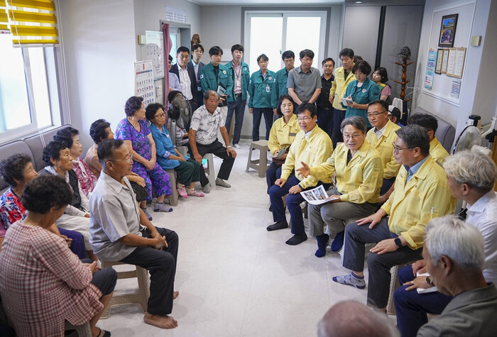 [광주=정찬남 기자] 강기정 광주광역시장이 8일 오전 특별재난지역으로 선포된 광산구 어룡동 집중호우 피해 현장을 찾아 복구상황을 점검하고 주민들과 향후 대책을 논의하고 있다./광주광역시 제공