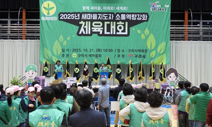 [구리=최광대 기자] (사)구리시새마을회(회장 안정섭)는 지난 10월 21일 구리시 시립체육관에서 ‘2025년 새마을지도자 체육대회’를 성황리에 개최했다. 이날 행사에는 안정섭 회장을 비롯해 새마을지도자 200여 명이 참석했다.