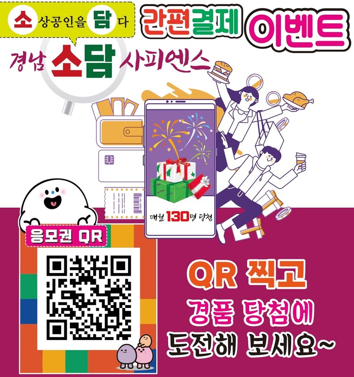간편결제 활성화를 통해 소상공인 결제 수수료 부담 완화와 경영개선, 홍보와 지역 내 소비촉진을 유도하기 위한 이번 행사는 경상남도 소상공인연합회(회장 신영철)의 주관으로 진행된다.