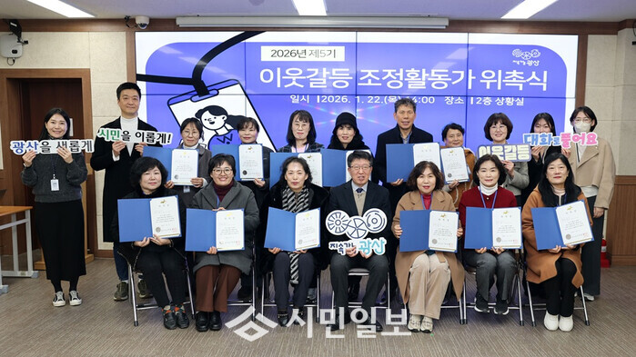 광산구 관계자는 “이웃갈등 조정활동가를 중심으로 일상에서 벌어지는 갈등으로 어려움을 겪는 주민들을 돕겠다”며 “체계적인 교육과 주민 의견을 바탕으로 활동가 전문성을 높이고 주민이 체감할 수 있는 갈등 조정 서비스를 제공할 것”이라고 말했다.