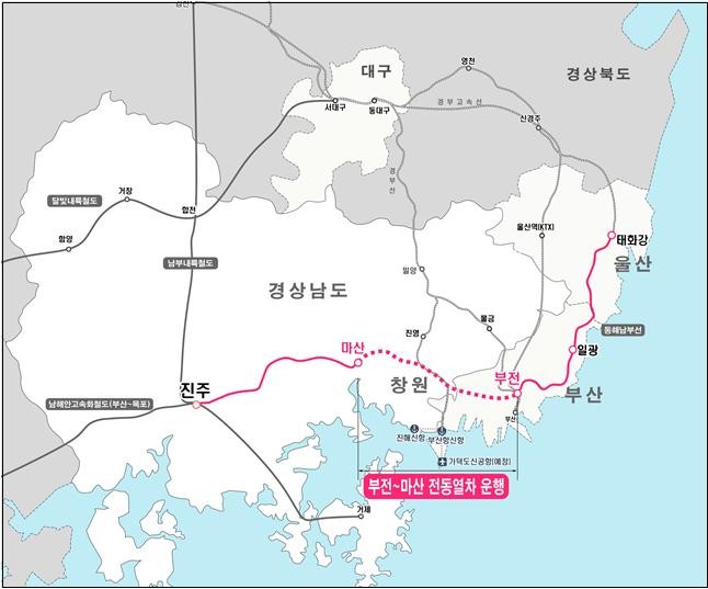 지난 10월 하병필 경남도지사 권한대행은 정부세종컨벤션센터에서 개최된 「균형발전 성과 및 초광역협력 추진전략 보고회」에서 대통령께 부울경 메가시티 조기 실현을 위해서는 부전~마산 구간 전동열차 조기 도입을 적극 건의한 바 있다.