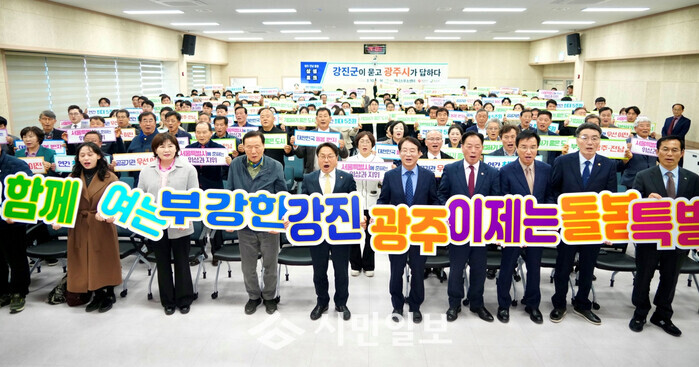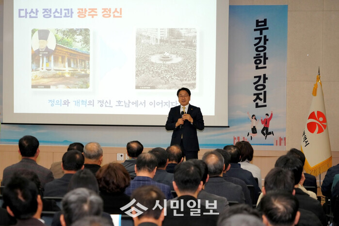 [광주=정찬남 기자] 광주광역시(시장 강기정)는 10일 강진군에서 ‘광주·전남 통합 강진군 상생토크’를 열고, 통합 이후 강진 발전 방향과 상생 협력 방안에 대해 군민들과 의견을 나눴다.