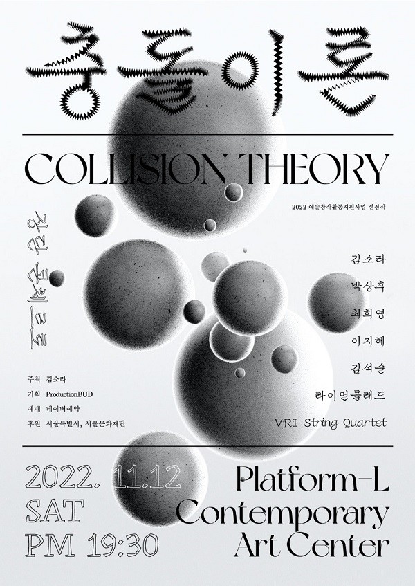 한편, 11월 12일(토) 저녁 7시 30분 플랫폼엘 라이브홀에서 약 60분 동안 진행되는 <장단 콘체르토 – 충돌이론>은 김소라가 주최하고 프로덕션벗(BUD)이 기획한 작품으로, 프로덕션벗 네이버 예약 사이트를 통해 전석 2만원으로 예매 가능하다.
