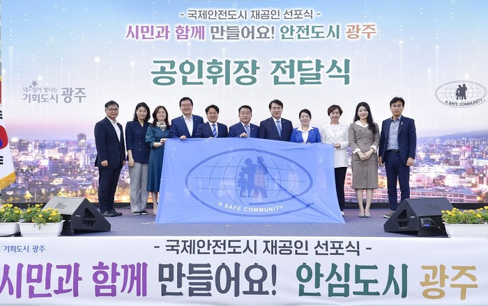 [광주=정찬남 기자] 광주광역시는 20일 오후 3시30분 빛고을국민안전체험관 분수광장에서 국제안전도시 재공인 선포식을 개최하고 향후 5년간 지속가능한 안전도시 실현을 위한 실천계획을 다짐했다.